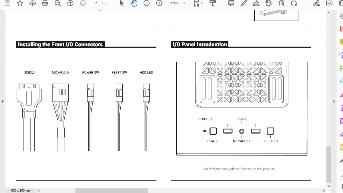 ケース(MACUBE 110)のマニュアルを見ると、スイッチ類のケーブルの説明がありました。